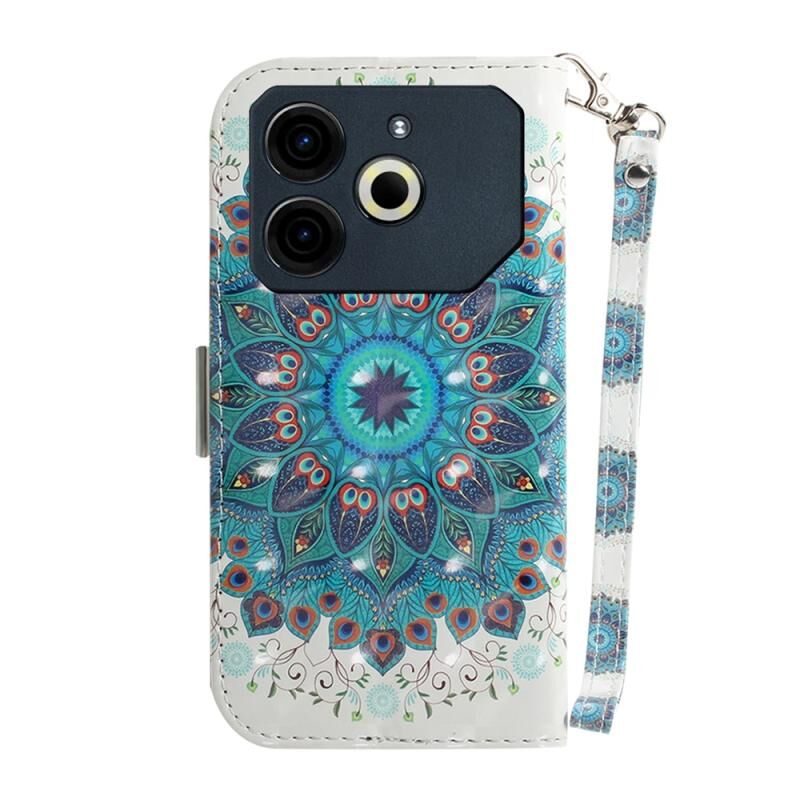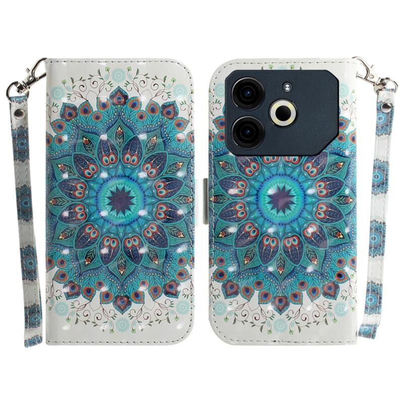 Θήκη τηλεφώνου δερμάτινη, οριζόντια, αναδιπλούμενη, 3D με χρώματα για Tecno Pova 6 Neo (Στεφάνι Παγωνιού)