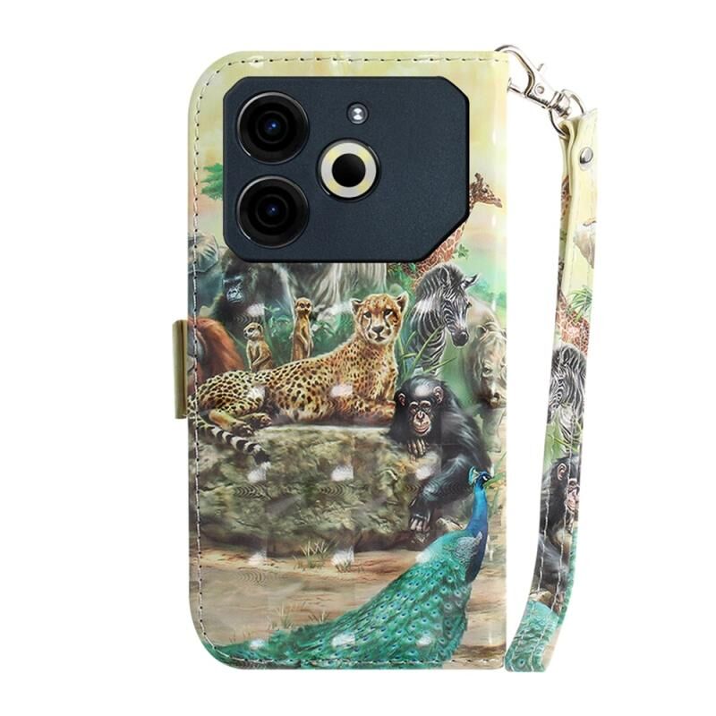 Θήκη τηλεφώνου δερμάτινη, οριζόντια, αναδιπλούμενη, 3D με χρώματα για Tecno Pova 6 Neo (Ζωολογικός κήπος)