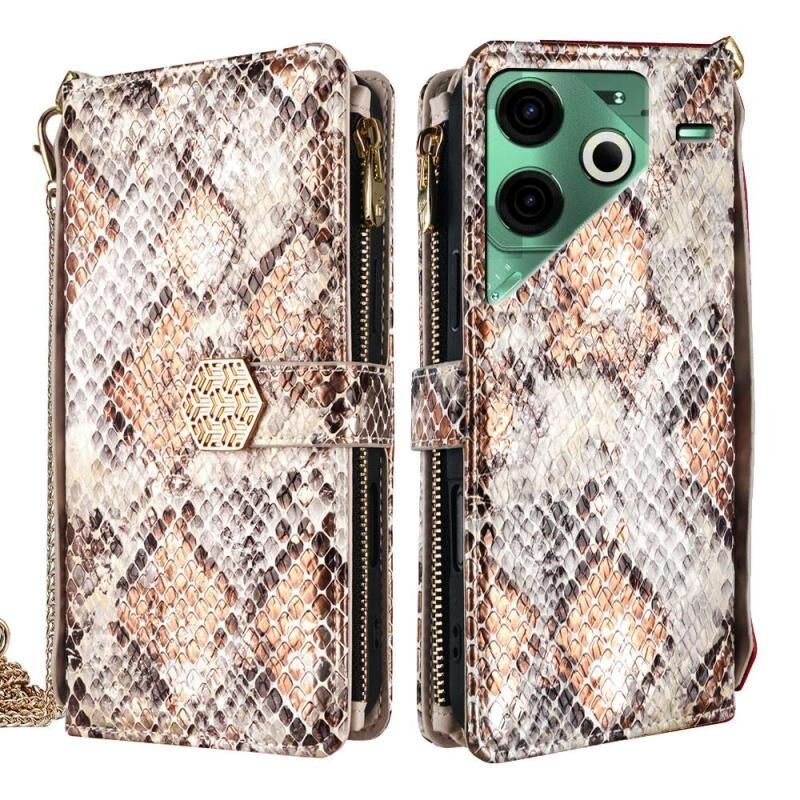 For Tecno Pova 6 Neo 4G Crossbody Handle Snake Texture Leather Phone Case(White)