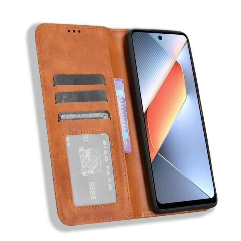 Για Tecno Pova 6 Neo 4G Μαγνητική πόρπη Ρετρό υφή δερμάτινη θήκη τηλεφώνου (καφέ)