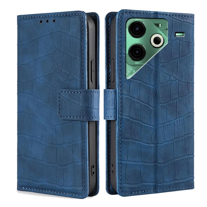 For Tecno Pova 6 Neo 4G Skin Feel Crocodile Magnetic Clasp Leather Phone Case(Blue)
