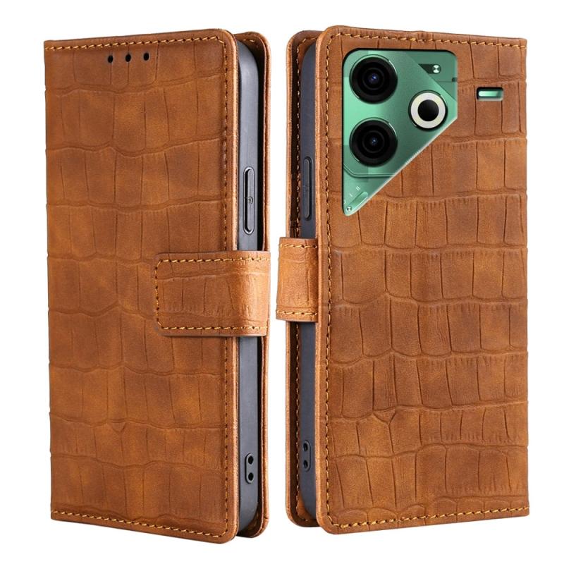 For Tecno Pova 6 Neo 4G Skin Feel Crocodile Magnetic Clasp Leather Phone Case(Brown)