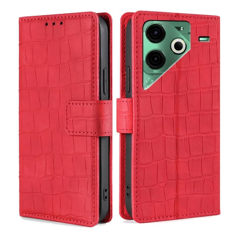For Tecno Pova 6 Neo 4G Skin Feel Crocodile Magnetic Clasp Leather Phone Case(Red)