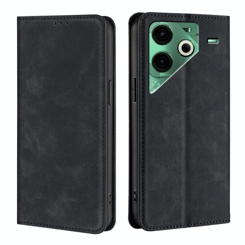 Για Tecno Pova 6 Neo 4G Skin Feel μαγνητική δερμάτινη θήκη τηλεφώνου (Μαύρο)