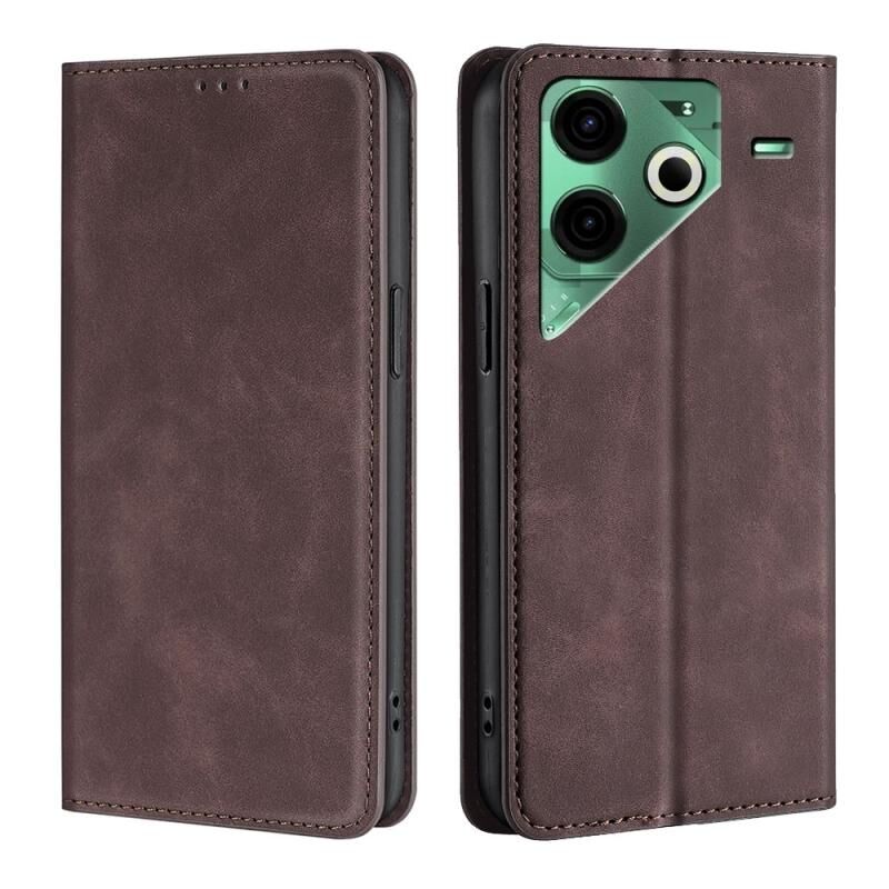 Για Tecno Pova 6 Neo 4G Skin Feel μαγνητική δερμάτινη θήκη τηλεφώνου (σκούρο καφέ)