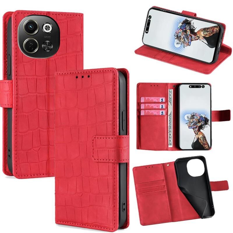 For Tecno Pova 6 Neo 5G Skin Feel Crocodile Magnetic Clasp Leather Phone Case(Red)