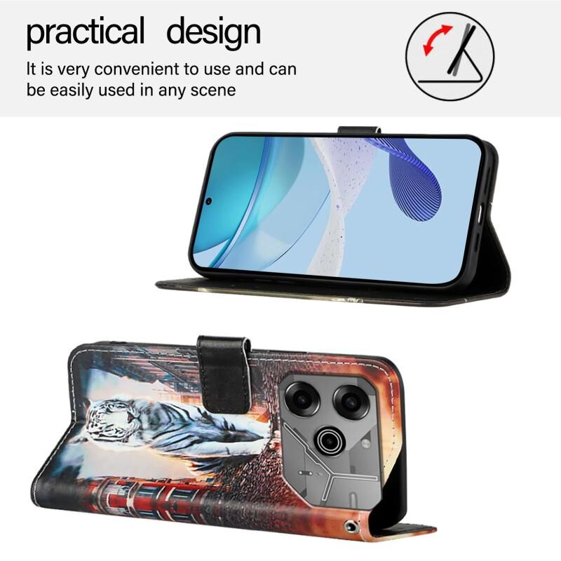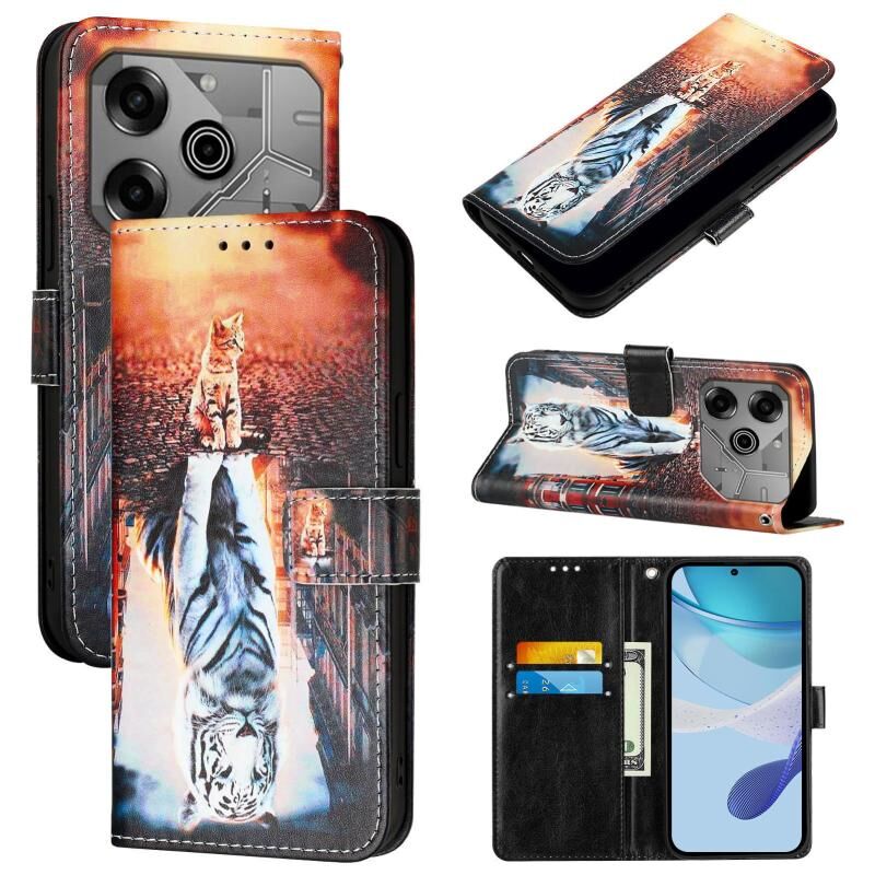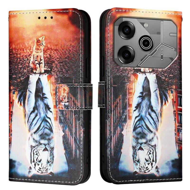 Θήκη τηλεφώνου από δέρμα με απλή ύφανση και πολύχρωμο σχέδιο (γάτες και τίγρεις) για Tecno Pova 6 Neo.