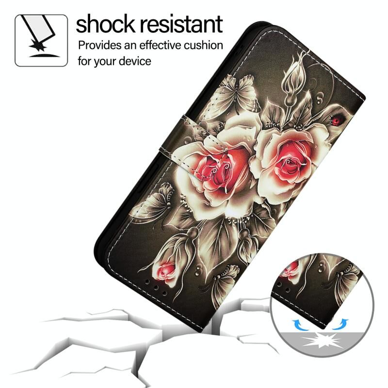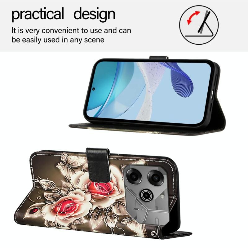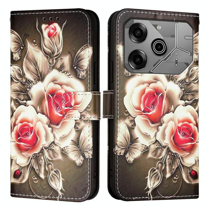 Θήκη τηλεφώνου Tecno Pova 6 Neo με σχέδιο πολύχρωμης ζωγραφικής, απλή ύφανση δέρματος (Τριαντάφυλλα σε μαύρο)