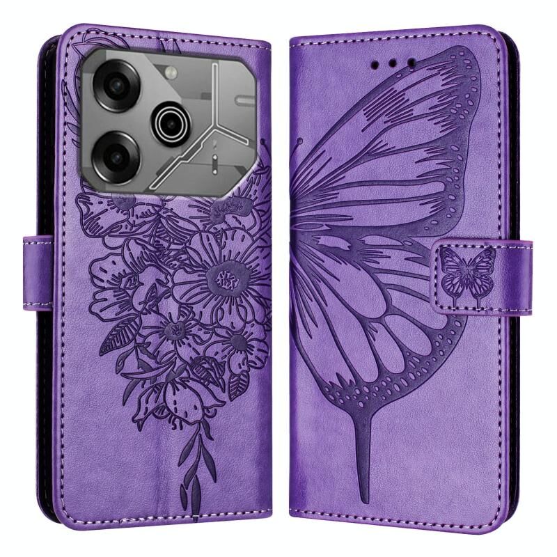 Θήκη τηλεφώνου Tecno Pova 6 Neo με ανάγλυφο σχέδιο πεταλούδας από δέρμα (Μαύρο)