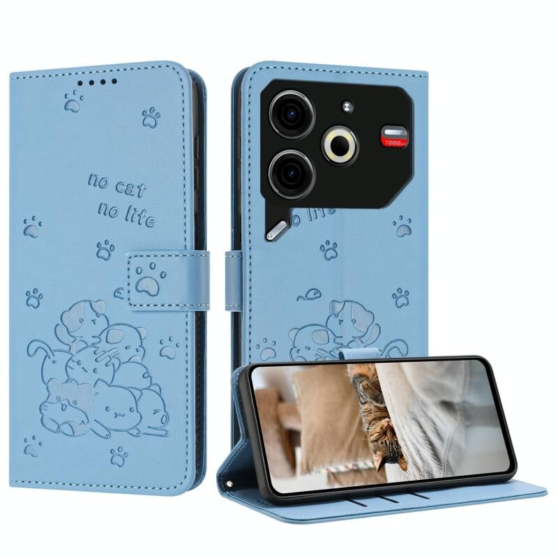 Θήκη δέρματος τηλεφώνου με ανάγλυφο γατάκι και λουρί για Tecno Pova 6 Neo (Μωβ)