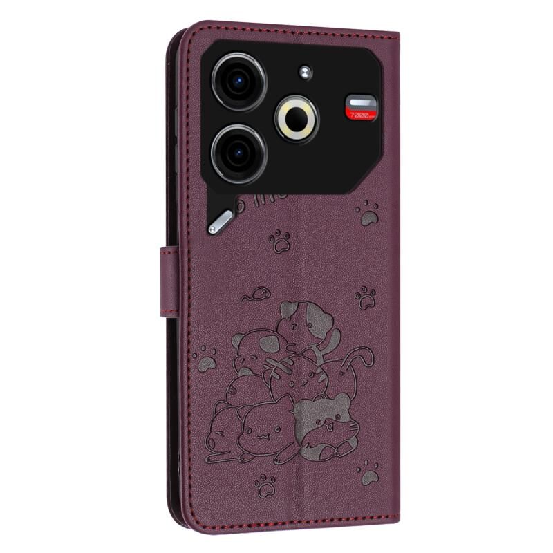 Θήκη δέρματος τηλεφώνου με ανάγλυφο γατάκι και λουρί για Tecno Pova 6 Neo (Μωβ)