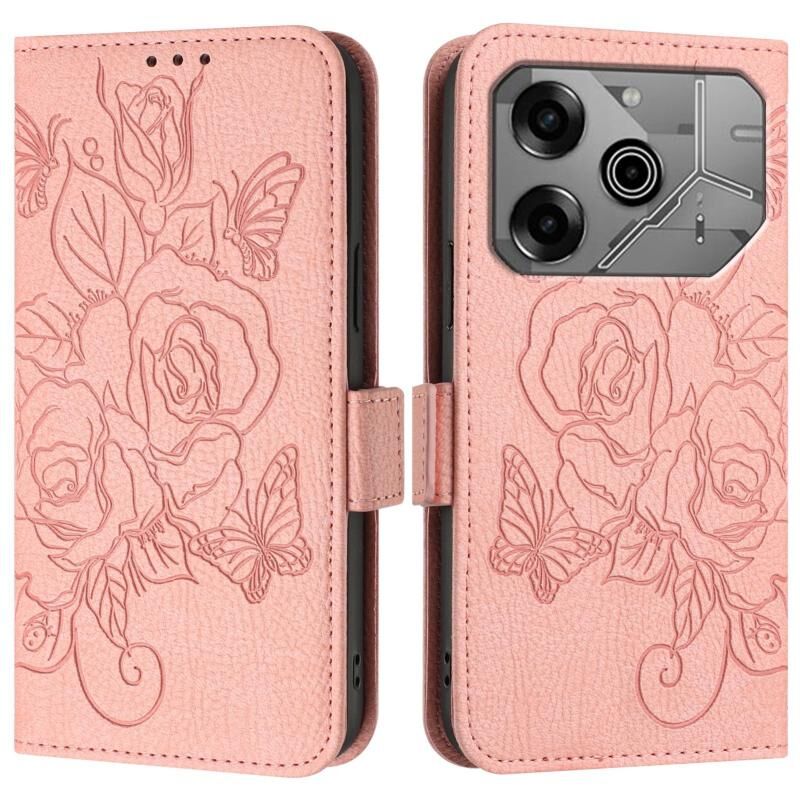 For Tecno Pova 6 Neo Embossed Rose RFID Anti-theft Leather Phone Case(Pink)