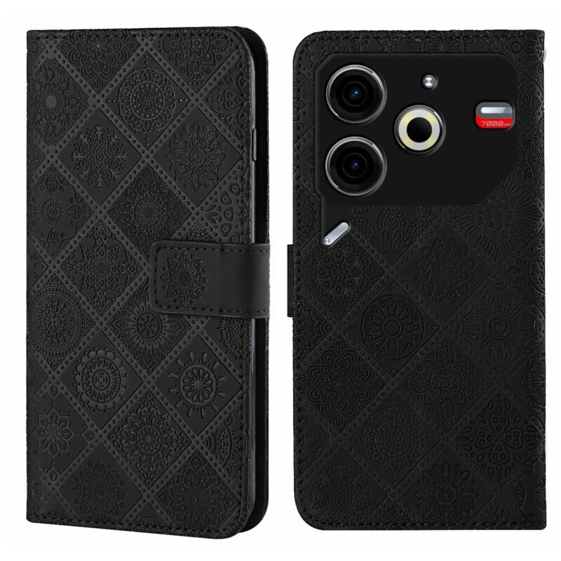 Θήκη τηλεφώνου Tecno Pova 6 Neo από δέρμα με ανάγλυφο σχέδιο εθνοτικού στυλ (Καφέ)