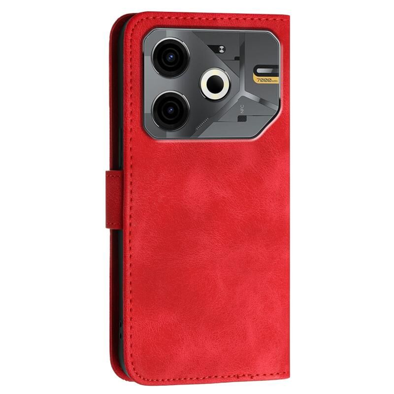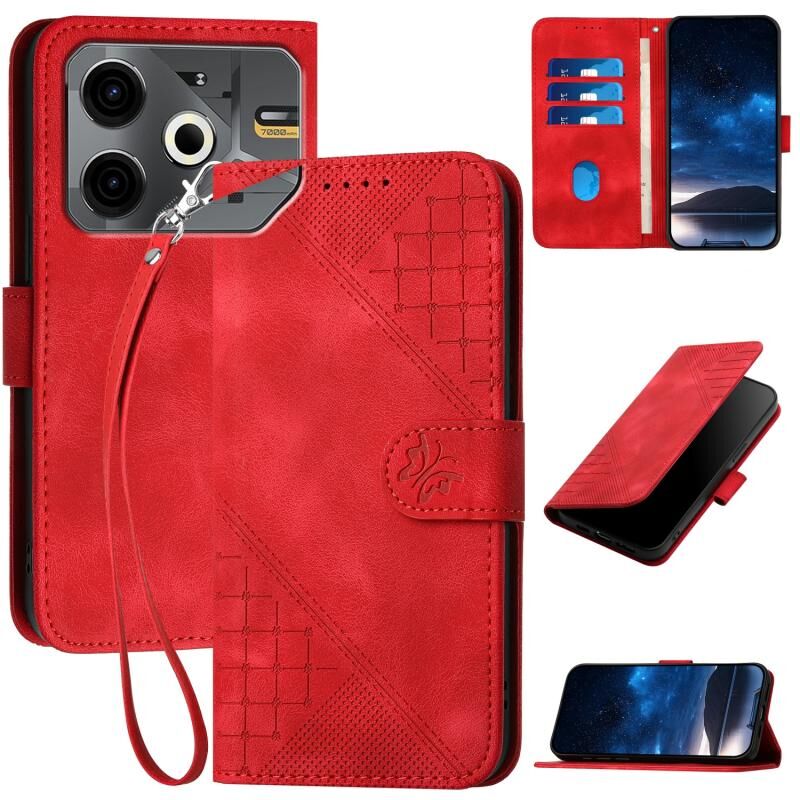 For Tecno Pova 6 Neo Grid Butterfly Embossed Pattern Leather Phone Case with Lanyard(Red)