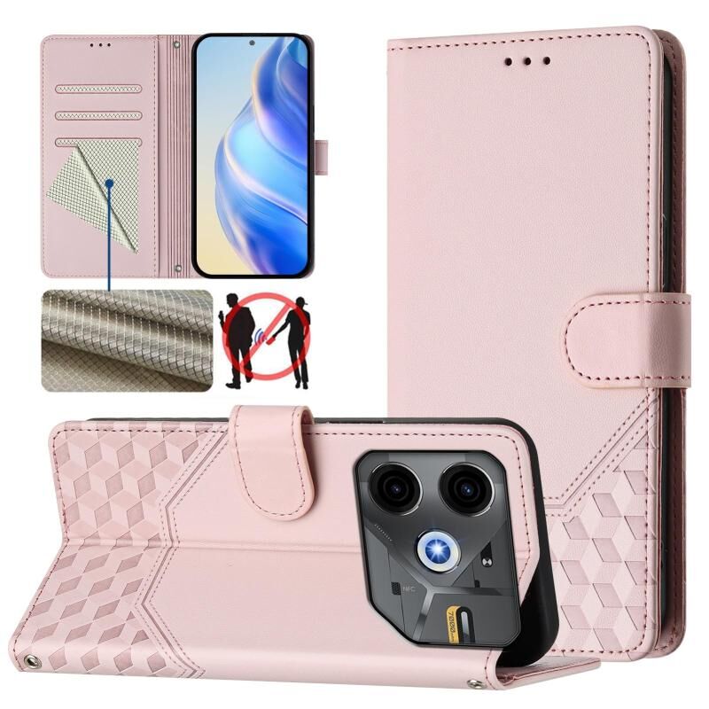 Για Tecno Pova 6 Neo Honeycomb ανάγλυφο RFID δερμάτινη θήκη τηλεφώνου (ροζ)