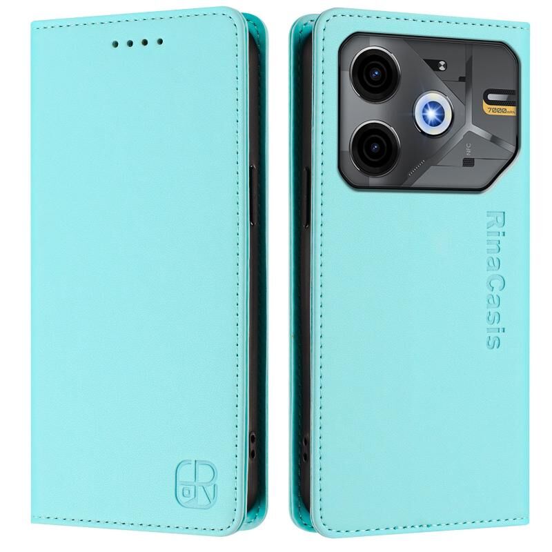 For Tecno Pova 6 Neo RC01 Dual-Folded Magnetic Suction RFID Leather Phone Case(Mint Green)