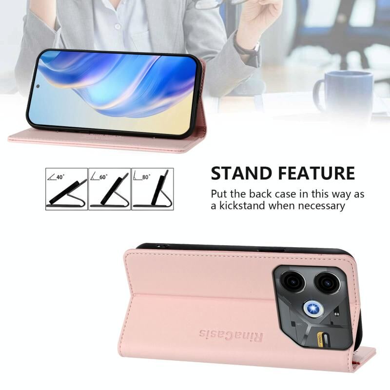 For Tecno Pova 6 Neo RC01 Dual-Folded Magnetic Suction RFID Leather Phone Case(Pink)