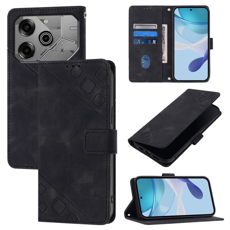 Για Tecno Pova 6 Neo Skin Feel ανάγλυφη δερμάτινη θήκη τηλεφώνου (μαύρο)