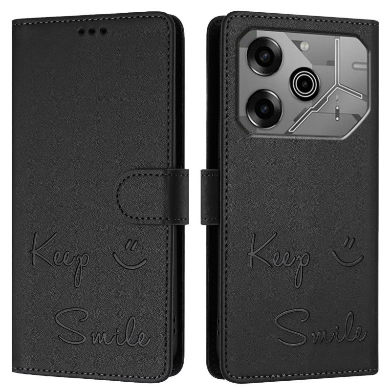 For Tecno Pova 6 Neo Smile Embossing RFID Leather Phone Case(Black)