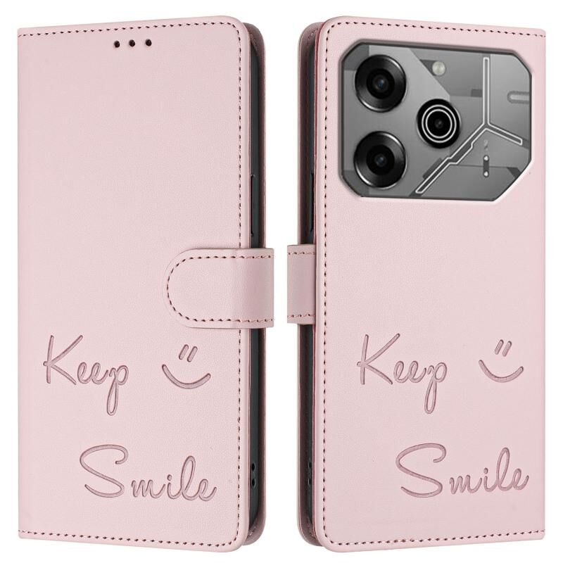 For Tecno Pova 6 Neo Smile Embossing RFID Leather Phone Case(Pink)