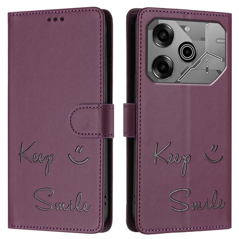 For Tecno Pova 6 Neo Smile Embossing RFID Leather Phone Case(Violet)