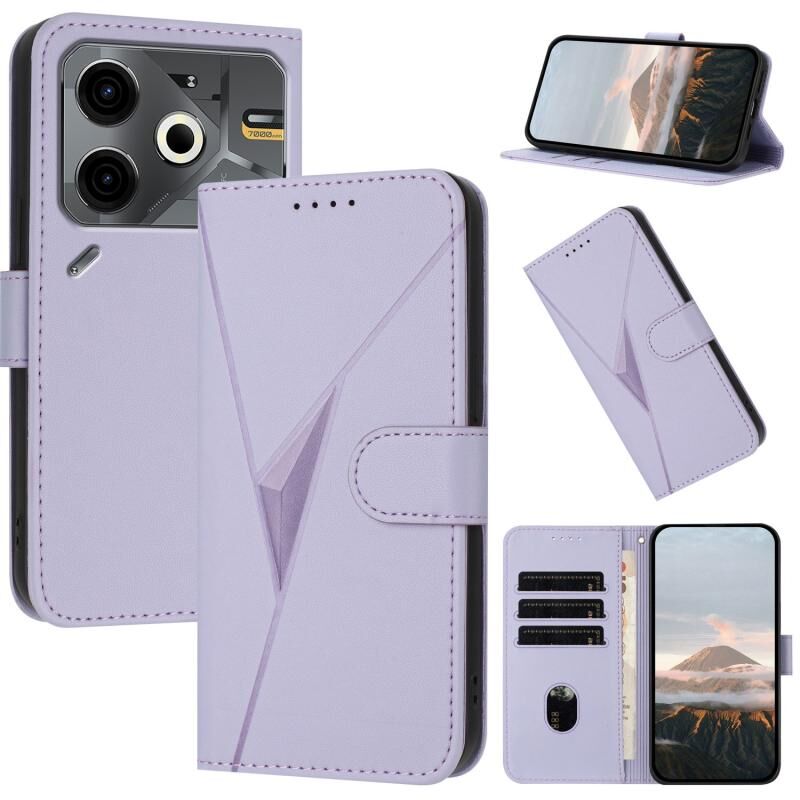 Θήκη τηλεφώνου από δέρμα με κούμπωμα τριγωνικού μοτίβου για Tecno Pova 6 Neo (ανοιχτό μωβ)
