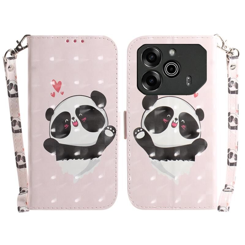 Θήκη τηλεφώνου δερμάτινη, οριζόντια, αναδιπλούμενη, με 3D έγχρωμο σχέδιο για Tecno Pova 6 / Pova 6 Pro (Heart Panda)