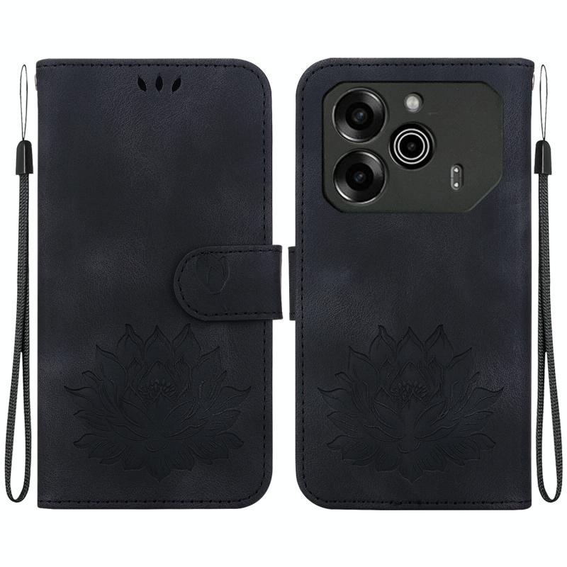 For Tecno Pova 6 / Pova 6 Pro Lotus Embossed Leather Phone Case(Black)
