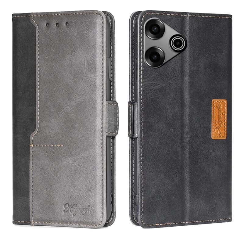 Για Tecno Pova 6 Pro 5G αντίθεση χρώμα πλευρά πόρπη δερμάτινη θήκη τηλεφώνου υπόθεση (μαύρο + γκρι)