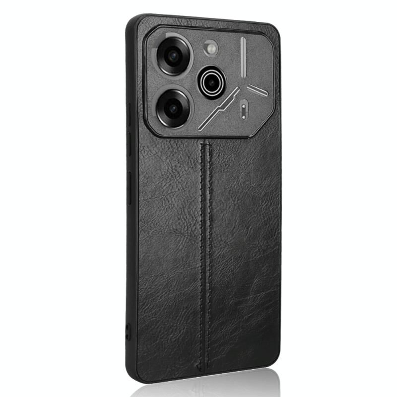 Για Tecno Pova 6 Pro 5G Αγελάδα μοτίβο ραπτικής κάρτα τσάντα υπόθεση τηλεφώνου (μαύρο)