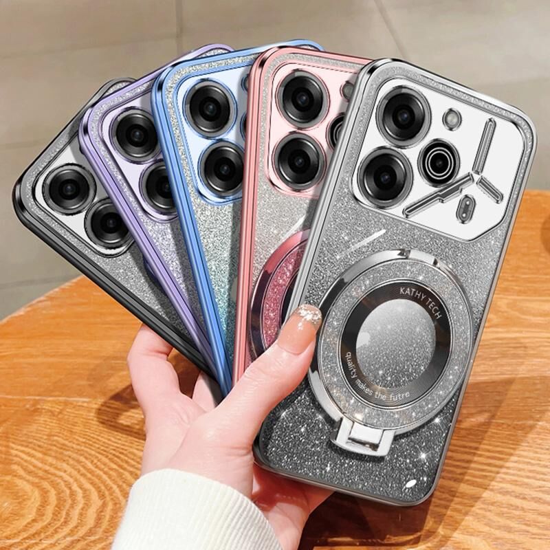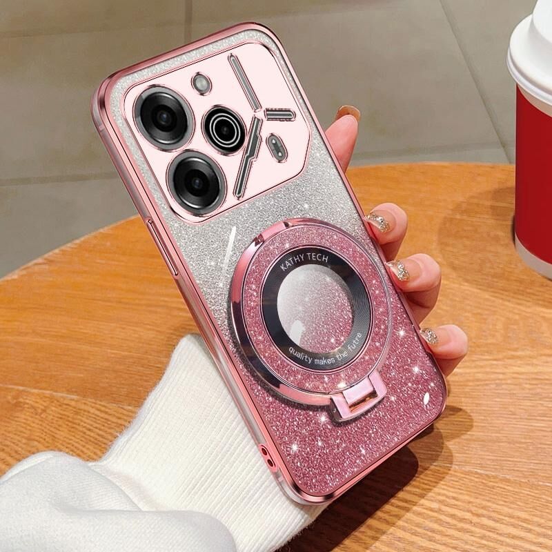 Για Tecno Pova 6 Pro Επιμεταλλωμένο διαβάθμιση Glitter Γύρος κάτοχος TPU τηλέφωνο υπόθεση (ροζ)