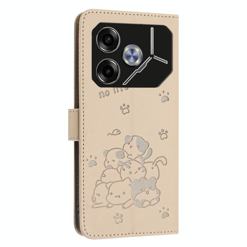 Θήκη δέρματος τηλεφώνου με ανάγλυφο γατάκι και λουρί για Tecno Pova 6 Pro / Pova 6 5G (Μπεζ)