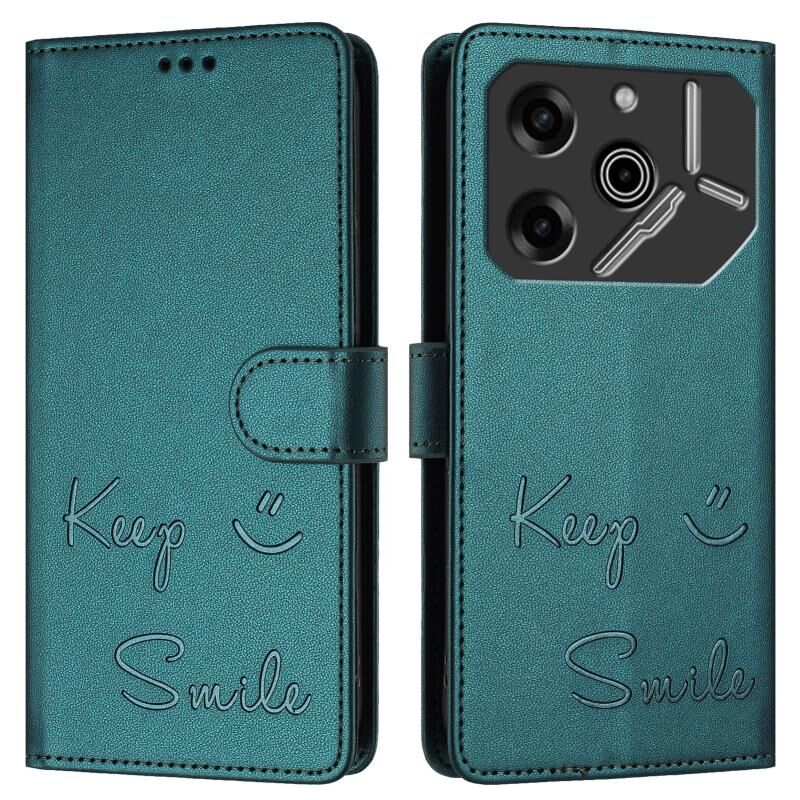 For Tecno Pova 6 Pro / Pova 6 5G Smile Embossing RFID Leather Phone Case(Peacock Green)