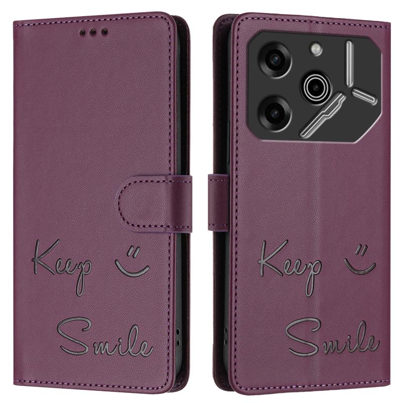 For Tecno Pova 6 Pro / Pova 6 5G Smile Embossing RFID Leather Phone Case(Violet)