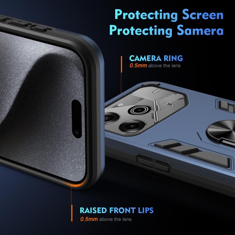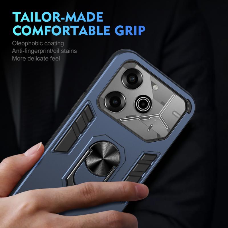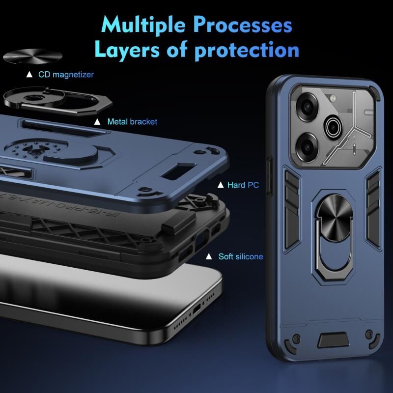 For Tecno Pova 6 Pro Shockproof Metal Ring Holder Phone Case(Blue)
