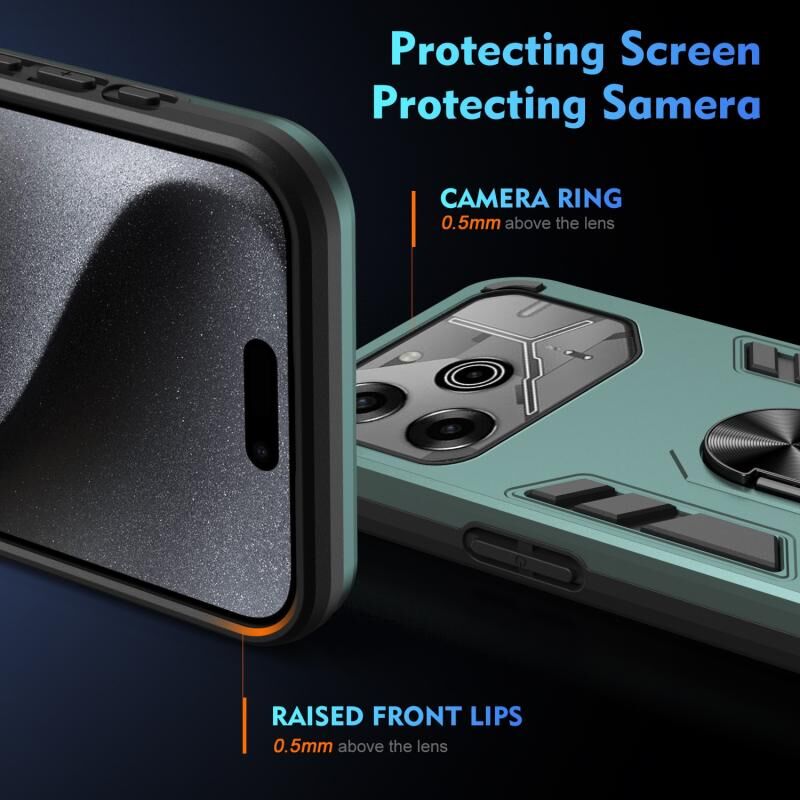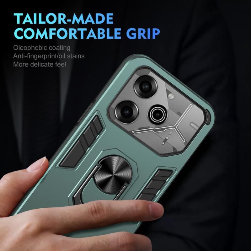 For Tecno Pova 6 Pro Shockproof Metal Ring Holder Phone Case(Green)