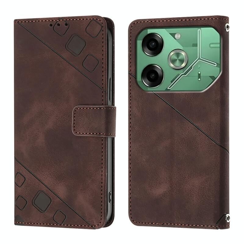 Για Tecno Pova 6 Skin Feel ανάγλυφη δερμάτινη θήκη τηλεφώνου (καφέ)