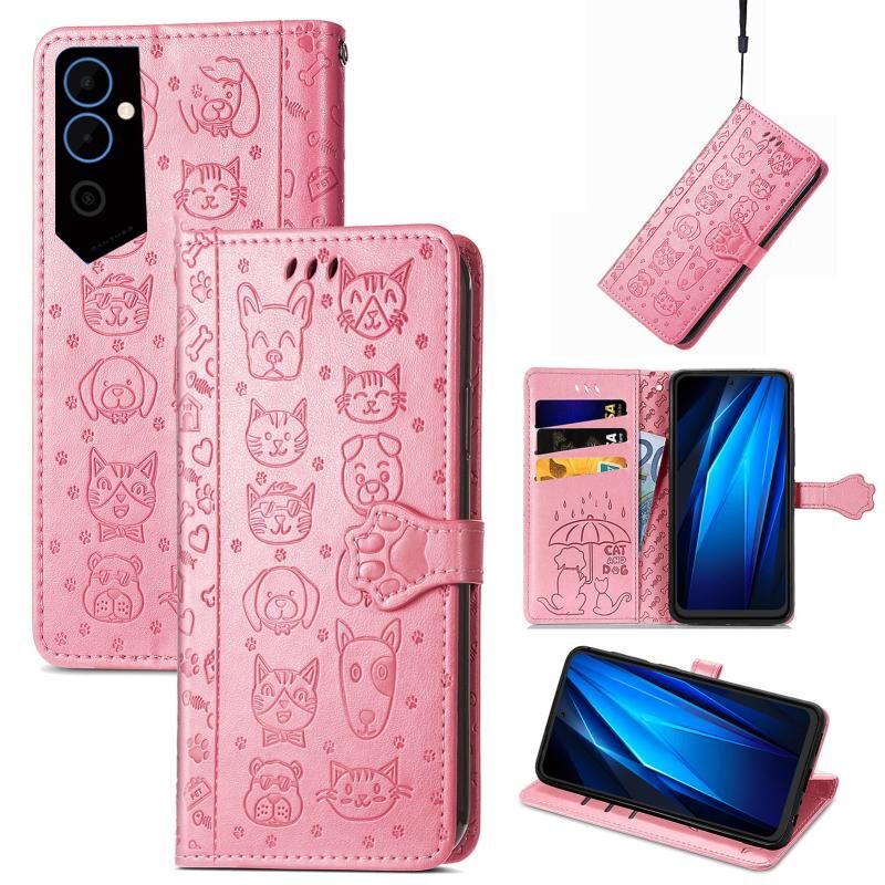 Θήκη τηλεφώνου Tecno Pova Neo 2 με ανάγλυφο σχέδιο γάτας και σκύλου από δέρμα (Μπλε)