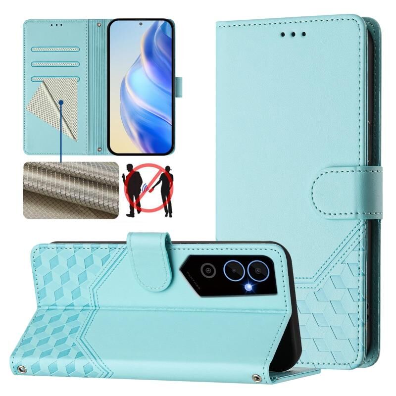 Για Tecno Pova Neo 2 κηρήθρα ανάγλυφο RFID δερμάτινη θήκη τηλεφώνου (πράσινο μέντα)