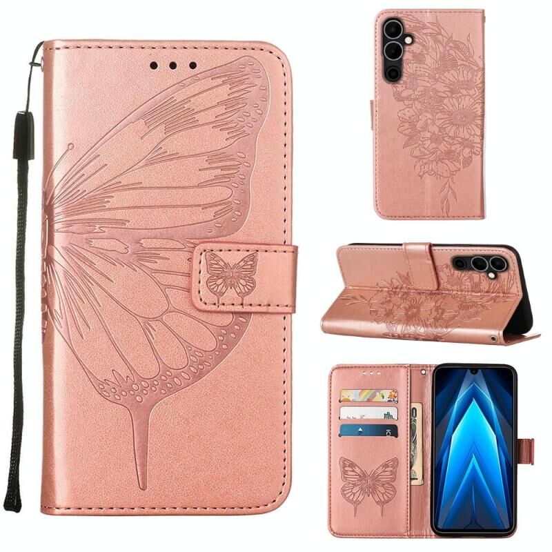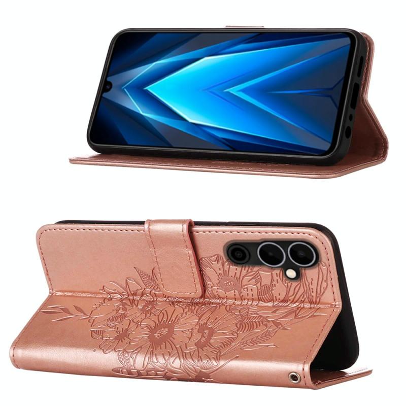 Θήκη τηλεφώνου Tecno Pova Neo 2 LG6N από δέρμα με ανάγλυφο σχέδιο πεταλούδας και φλις (Γκρι)