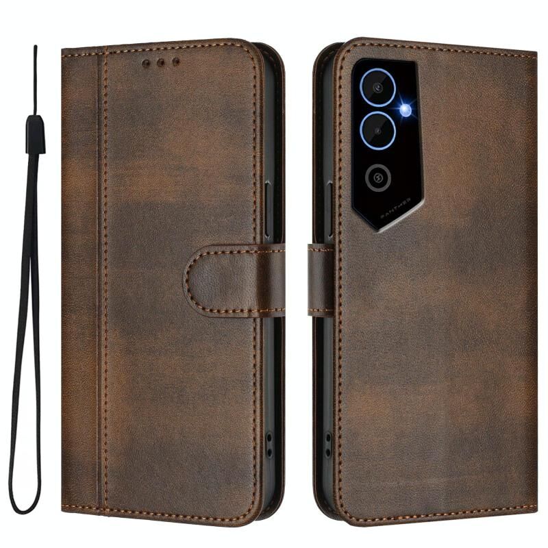 Θήκη τηλεφώνου Tecno Pova Neo 2 με ραφές, αγκράφα και δέρμα retro (Μαύρο)