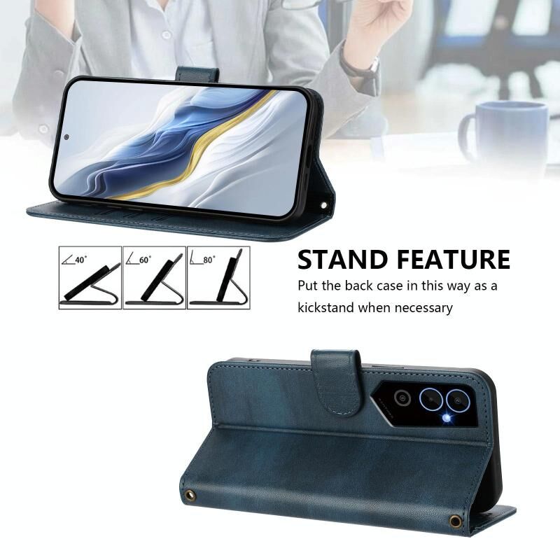Θήκη τηλεφώνου Tecno Pova Neo 2 με ραφές, αγκράφα και δέρμα retro (Μαύρο)