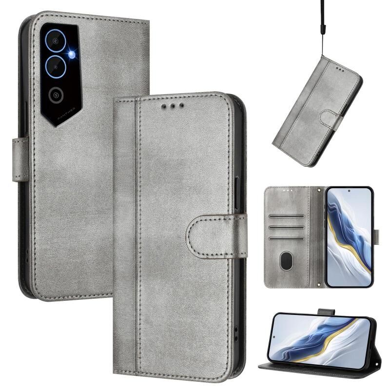 Θήκη τηλεφώνου Tecno Pova Neo 2 με ραφές, αγκράφα και δέρμα retro (Μαύρο)