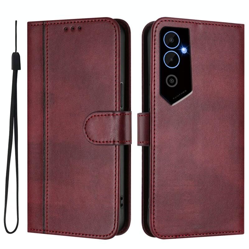 Θήκη τηλεφώνου Tecno Pova Neo 2 με ραφές, αγκράφα και δέρμα retro (Μαύρο)