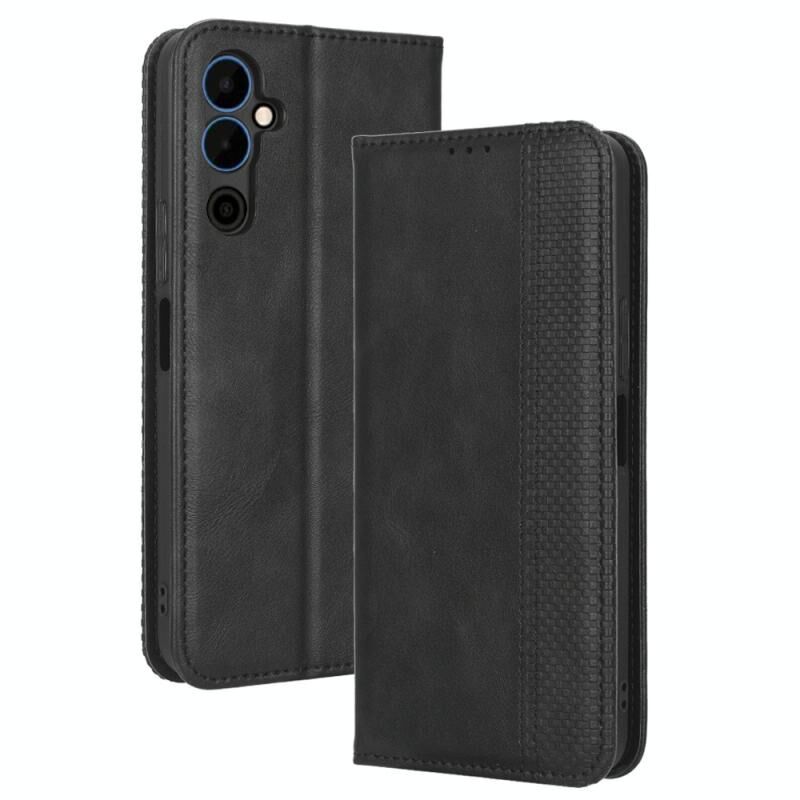 Για Tecno Pova Neo 2 Μαγνητική πόρπη ρετρό υφή δερμάτινη θήκη τηλεφώνου (μαύρο)