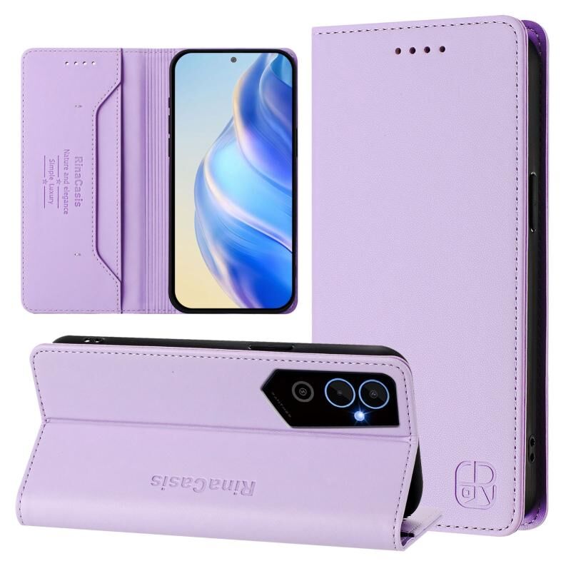 For Tecno Pova Neo 2 RC01 Dual-Folded Magnetic Suction RFID Leather Phone Case(Light Purple)