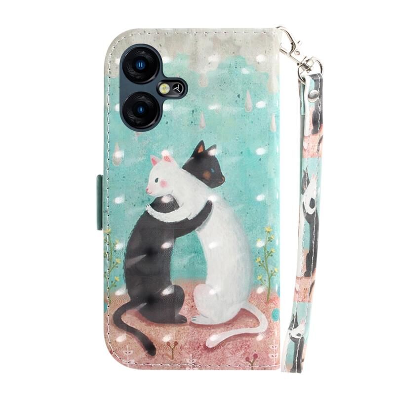 Θήκη τηλεφώνου δερμάτινη, οριζόντια, αναδιπλούμενη, με έγχρωμο 3D σχέδιο για Tecno Pova Neo 3 (Μαύρη Λευκή Γάτα)