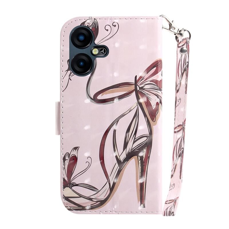 Θήκη τηλεφώνου δερμάτινη, οριζόντια, αναδιπλούμενη, 3D χρωματιστή για Tecno Pova Neo 3 (Πεταλούδα ψηλοτάκουνα)