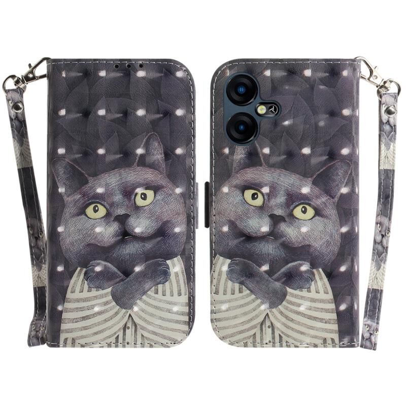 Θήκη τηλεφώνου δερμάτινη, οριζόντια, αναδιπλούμενη, με τρισδιάστατο χρωματιστό σχέδιο για Tecno Pova Neo 3 (Αγκαλιάζουσα Γάτα)
