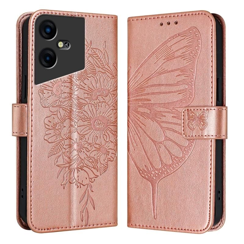 Θήκη τηλεφώνου Tecno Pova Neo 3 με ανάγλυφο σχέδιο πεταλούδας από δέρμα (Μαύρο)